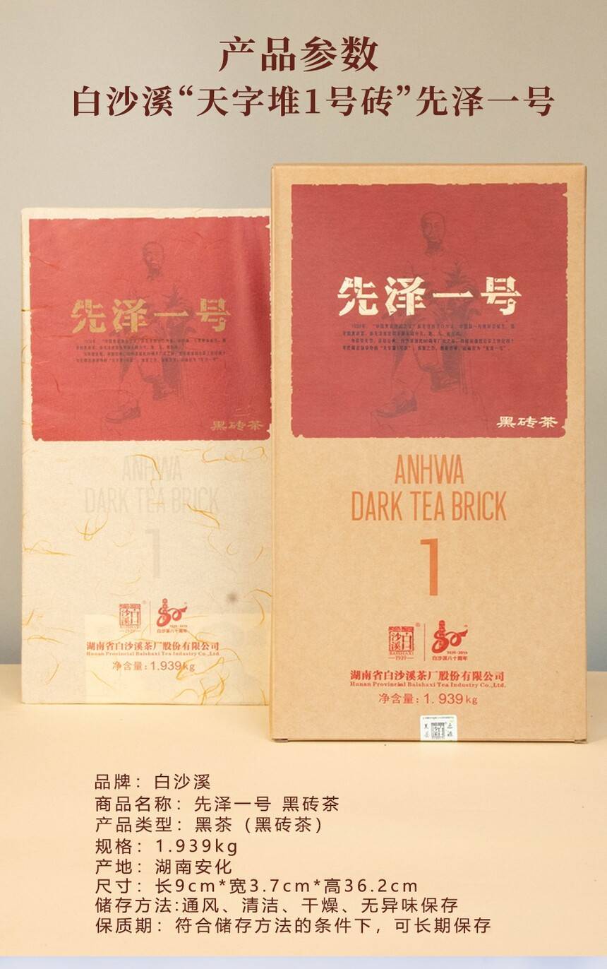 湖南安化正宗黑茶白沙溪獲磚先澤一號(hào)黑茶1.939kg盒