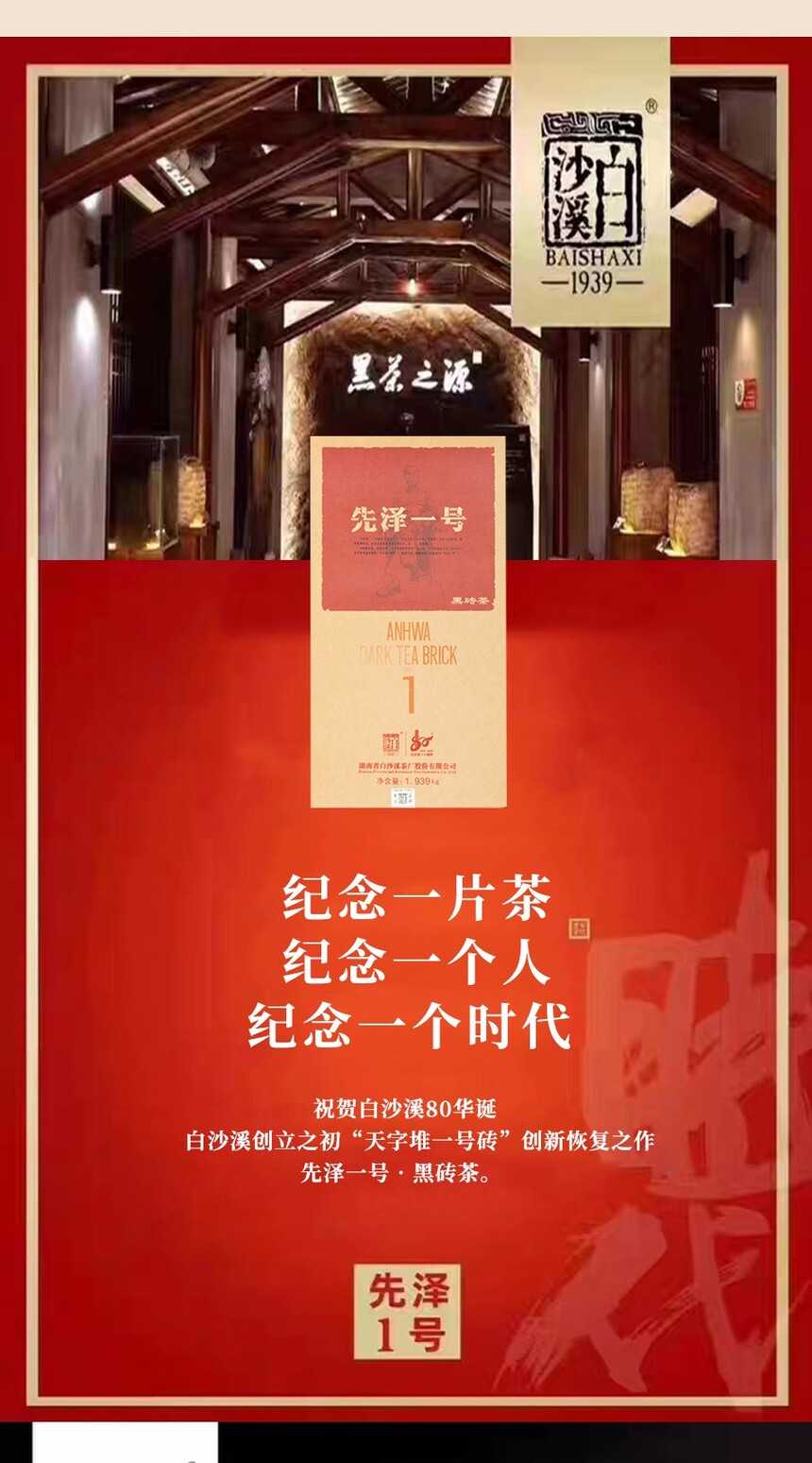 • 湖南安化正宗黑茶白沙溪獲磚先澤一號(hào)黑茶1.939kg盒