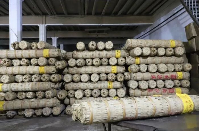 千兩茶是最易存儲的茶。千兩茶原生態(tài)的傳統(tǒng)包裝,與茶體一次成型。其外包裝選自安化本地三年以上、并在立夏后砍伐的楠竹篾片編織成千兩茶篾簍、棕片為第二層內(nèi)襯(起防塵、防雨、透氣作用)、粽葉為第三層內(nèi)襯(防漏、防串味),這三層包裝對茶葉不僅起著保護(hù)作用,而且與茶葉相互滲透,使得茶體品質(zhì)、茶味口感、茶品香氣有著提升作用,更有利于茶體的收藏儲存、運(yùn)輸陳化。