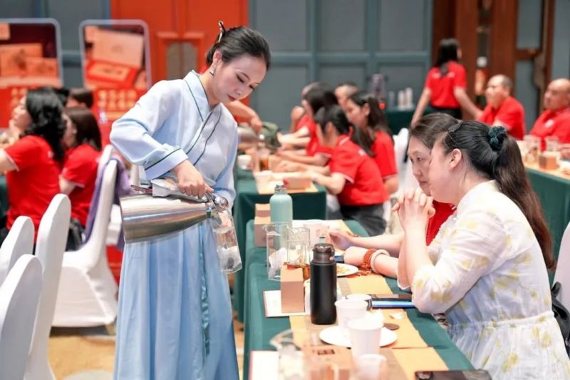 下午,在一場激蕩人心、紅色飛揚的白沙溪情景劇《生生不息》中,白沙溪“大師莊園”子品牌推介與白沙溪2024新品發(fā)布重磅開啟。原湖南省軍區(qū)醫(yī)院院長李典富作《中醫(yī)與黑茶健康交流分享》;白沙溪副總經(jīng)理張嶺苓作白沙溪“大師莊園”子品牌推介;湖南農(nóng)業(yè)大學教授、國務院特殊津貼專家、國家教育部茶學重點實驗室主任黃建安對大師莊園系列新品作專業(yè)點評;中國制茶大師、湖南省政府特殊津貼專家、白沙溪首席專家肖益平與嘉賓互動交流。白沙溪2024新品營銷政策發(fā)布,一直備受矚目和期待的大師莊園·甲辰茯茶、大師莊園·天尖餅與陳皮千兩餅3款新品重磅亮相,尤其是大師莊園茶因其極致的稀缺性、獨特的高端品質(zhì),成為本次活動會場的明星產(chǎn)品。現(xiàn)場還特別進行了“大師莊園品位真?zhèn)鳌辈杷嚤硌?,氣氛熱烈、高潮迭起,嘉賓們對白沙溪新品高度評價,現(xiàn)場銷售一空。