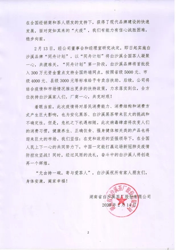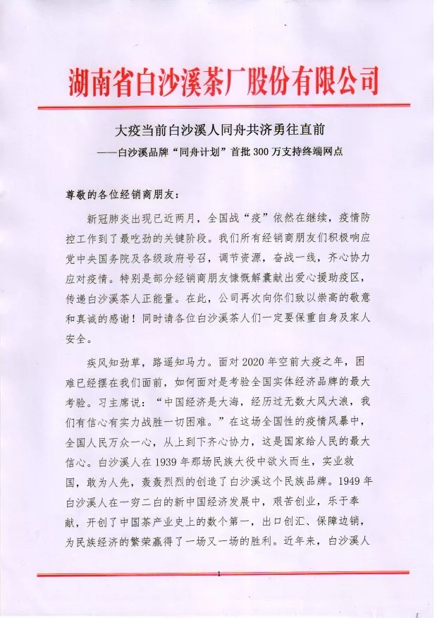 白沙溪品牌“同舟計劃”首批300萬支持終端網(wǎng)點