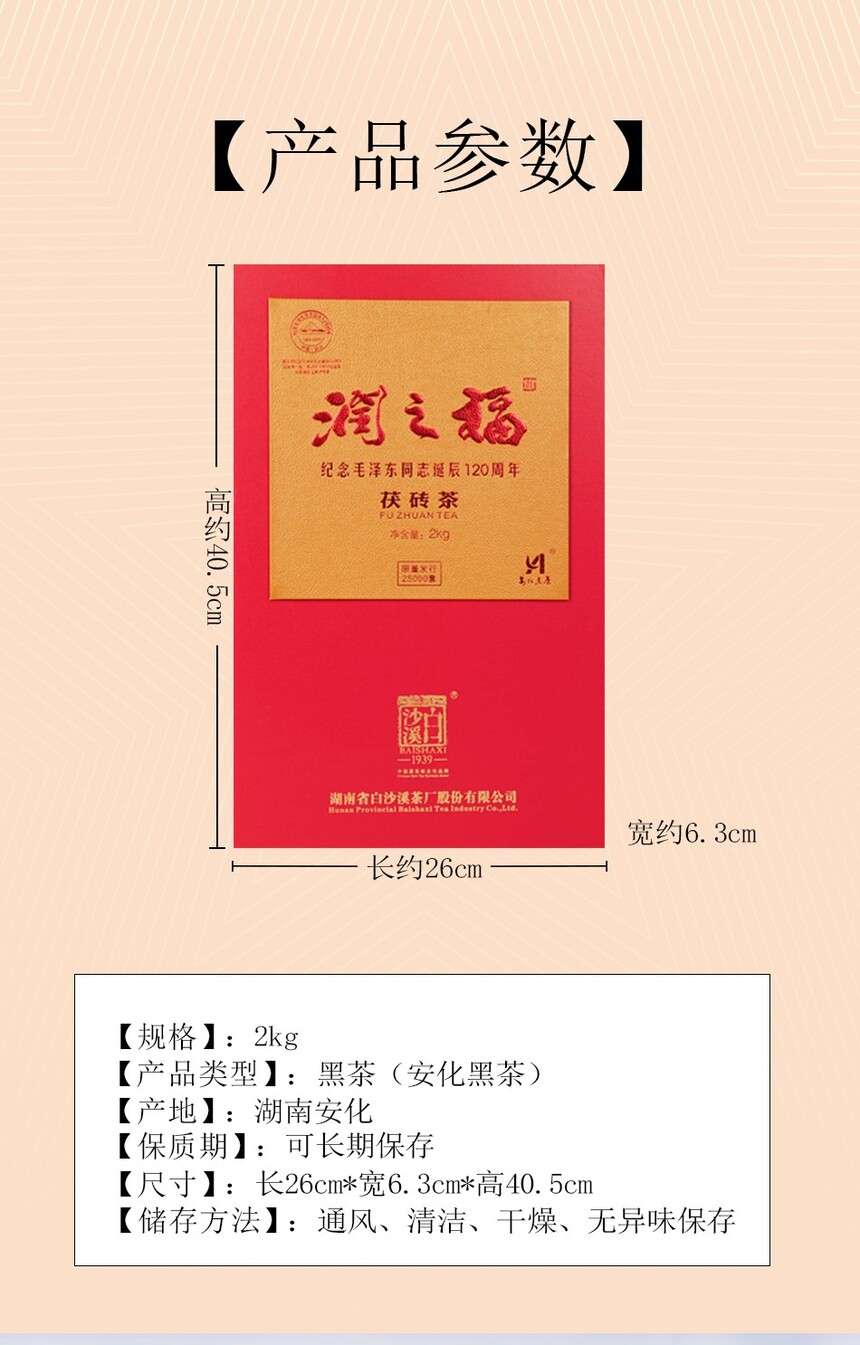 湖南安化正宗白沙溪黑茶潤之福獲磚茶金花茂盛2kg禮盒